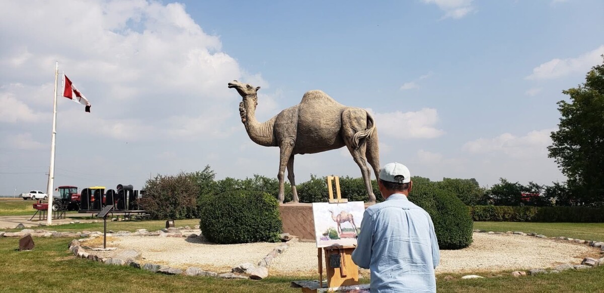 Weiming Zhao, a well-known Brandon-based artist recognized for his plein air paintings of iconic scenes throughout Brandon and Western Manitoba, recently felt an emotional pull toward Glenboro’s beloved mascot, Sara the Camel.