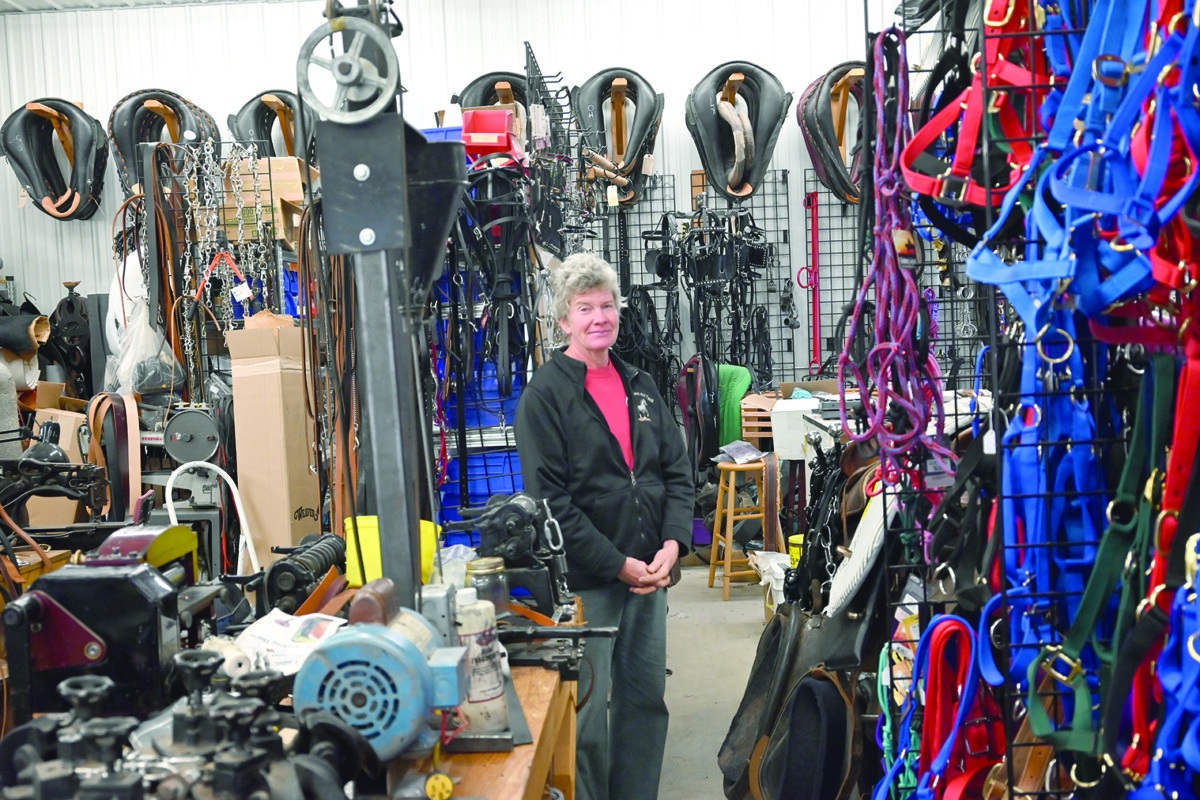 PHOTO CAPTION: Theresa Early of Holland in her harness shop which is filled with unique equipment. PHOTO BY SUZANNE PADDOCK