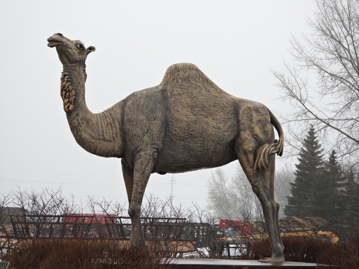 Starting with a steel rod skeleton, the statue was built with air filled foam, fibreglass cloth and coloured resin. This technique proved perfect for our Canadian weather! In the late 1970’s, when the Chamber of Commerce in Glenboro agreed on the idea of a camel as the symbol of Glenboro, George Barone was called upon to complete their vision.