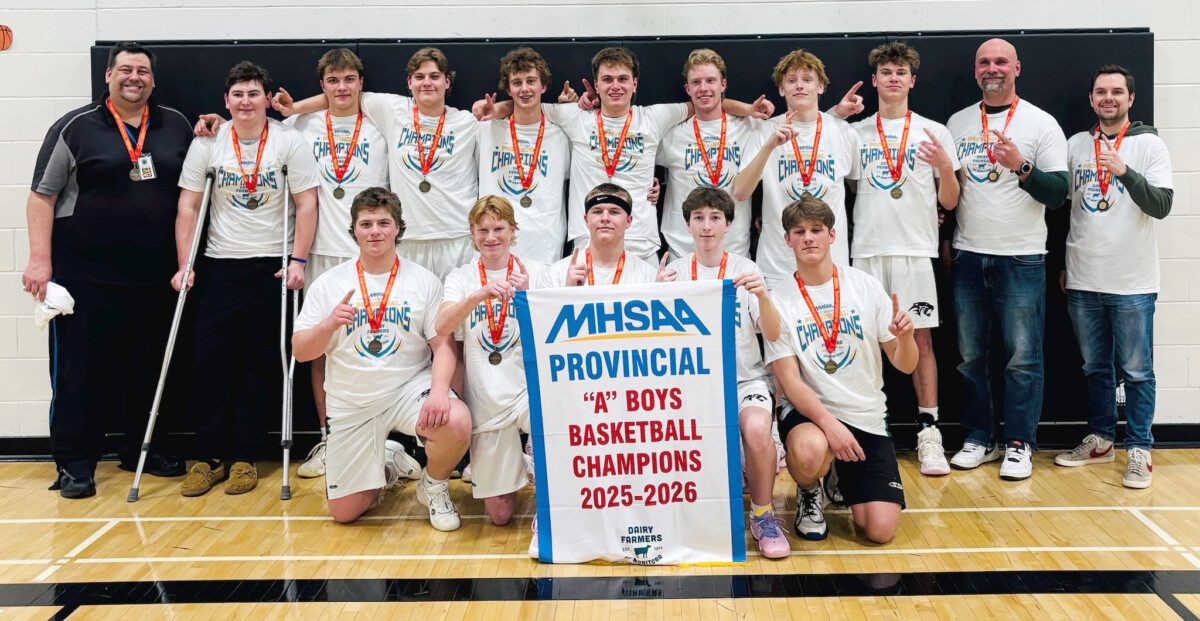 Coaches Ryan Diehl, Devin McLean and Drake Wallis travelled north to Ste. Rose with the Varsity Boys Panthers basketball team, where they captured the provincial banner after dominating the court all weekend. After finishing as runners-up the past two years, the long-awaited provincial title made the victory even more special.